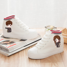 春季松糕厚底高帮帆布鞋女内增高学生韩版百搭涂鸦布鞋系带小白鞋