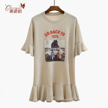 夏装新款港味港风宽松中长款时尚韩版印花收腰显瘦短袖棉t恤女裙