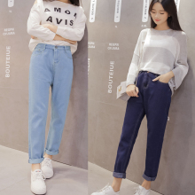 韩国ulzzang原宿风牛仔裤子女夏季学生宽松韩版bf风九分哈伦裤潮