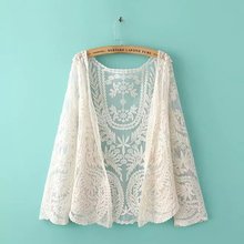 外贸原单女士弹力勾花镂空无扣刺绣贴布花边拼接竹叶长袖蕾丝开衫