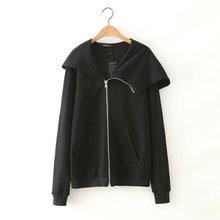媱媱外贸 2016春夏女装新款个性时尚斜拉链超大帽子卫衣外套上衣