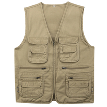 中老年马甲男春秋薄多口袋背心单层纯棉坎肩户外工装钓鱼摄影马夹
