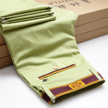 夏季男士休闲裤夏天薄款男裤修身大码直筒裤纯棉绿色男装长裤子潮