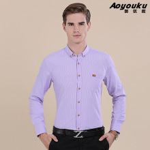 春季男士长袖衬衫商务休闲韩版修身型寸衫青年牛津仿男装条纹衬衣
