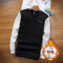 长袖t恤男圆领修身新款加绒加厚印花打底衫男T恤长袖男装秋季上衣
