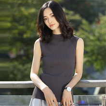 2017夏季新款女装无袖半高领针织衫女百搭修身纯色针织背心女装