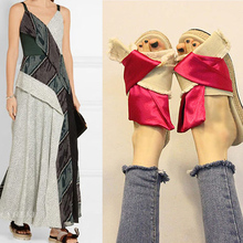 韩国东大门代购女鞋欧美时尚绸缎亚麻拼接蝴蝶结拖鞋懒人拖鞋厚底