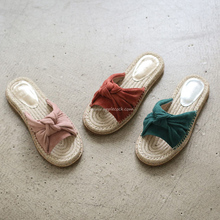 韩国东大门代购女鞋欧美时尚蝴蝶结亚麻拖鞋草编底平底懒人拖鞋潮