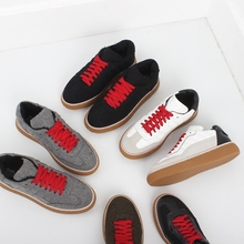 系带女鞋休闲鞋真皮低帮鞋单鞋女厚底松糕跟秋冬加绒2016板鞋学生