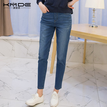 康曼德春季韩版弹力牛仔裤松紧腰小脚铅笔裤九分裤女紧身显瘦长裤