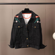 2017韩版春装新款宽松牛仔外套女刺绣花朵牛仔衣原宿风外套bf韩国