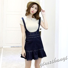 2017春季新款修身荷叶边牛仔背带裙女短裙无袖连衣裙夏无袖背心裙