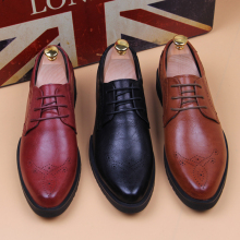 新商务正装皮鞋男士英伦尖头欧版皮鞋 潮流透气鞋布洛克雕花男鞋