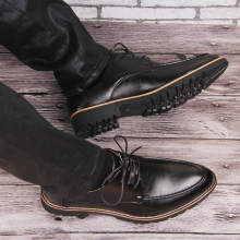 春秋韩版男士休闲皮鞋青年英伦日系系带商务正装男鞋内增高婚鞋潮