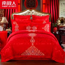 南极人贡缎提花四件套全棉纯棉婚庆被套1.5/1.8m床单双人床上用品