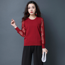 针织衫套头女2017春季新款时尚蕾丝拼接打底衫韩版修身显瘦上衣潮