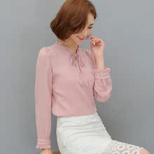 雪纺衫长袖女2017新款春韩版宽松显瘦蝴蝶结防晒百搭休闲衬衫上衣