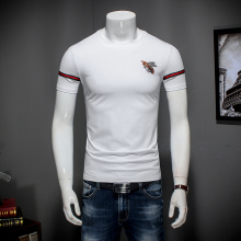 高端短袖t恤男夏季小衫潮 韩版修身蜜蜂刺绣丝光棉半截袖体恤衫男