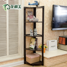 特价简易落地角落隔板置物架简约客厅转角架卧室厨房实木收纳架子