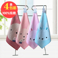 4条包邮金号纯棉方巾带挂钩小毛巾无捻绣花擦手巾卡通图案带挂绳