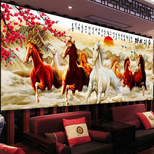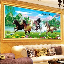蒙娜丽莎十字绣八骏图马到成功财源滚滚新款客厅2米印花大幅画