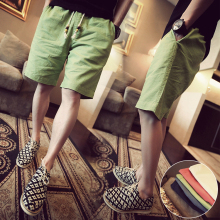 TIM呆呆亚麻短裤男韩版直筒休闲裤纯色五分裤中裤青年潮流沙滩裤