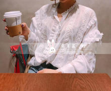 0313韩国东大门进口代购 纯色气质甜美落肩灯笼袖衬衫 BY FLOW