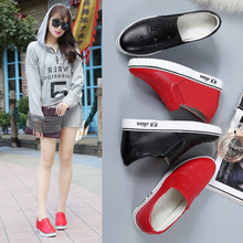 牛皮乐福鞋女内增高一脚蹬懒人休闲单鞋2017春季新款真皮坡跟平底