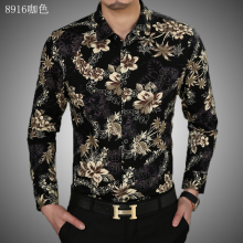 春夏季男士长袖衬衫纯丝光棉免烫寸衫中年男土休闲大码花衬衣薄款