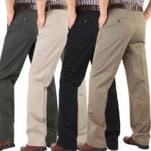 春夏季休闲长裤男士薄款中年高腰直筒加大码中老年爸爸西裤纯全棉