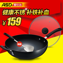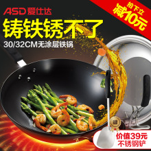 爱仕达炒锅铁锅32cm无涂层炒菜锅不锈铸铁锅电磁炉平底锅生铁炒锅