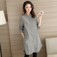 衬衫女长袖女装2017新款春装韩版中长款宽松潮打底衫学生春季衬衣