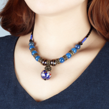 原创民族风复古项链百搭景泰蓝吊坠玛瑙琉璃锁骨链颈链短款春夏