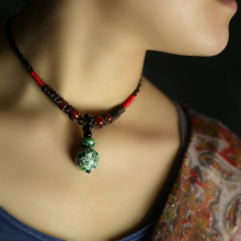 原创民族风手工红玛瑙松石复古百搭特色吊坠项链女颈链锁骨链