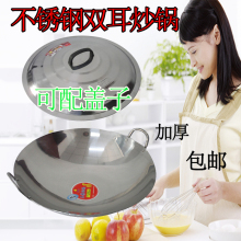 不锈钢炒锅圆底锅煤气灶燃气灶加厚40cm45cm50cm55cm60cm65cm70cm