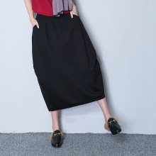 2017春夏女款文艺范黑色大码宽松显瘦松紧腰裙半身长裙花苞裙