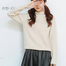 独家定制韩国秋冬新款百搭纯色长袖套头针织衫半高领毛衣打底衫女