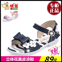 牧童女童凉鞋2017夏季新款女童真皮凉鞋花朵舒适牛皮公主凉鞋特价