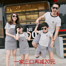 亲子装夏装全家装家庭套装条纹母子装母女裙家庭装一家三口套装