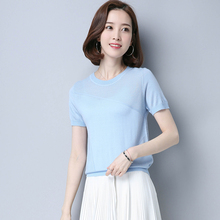 夏季镂空针织衫女套头短款韩版百搭修身桑蚕丝短袖T恤衫上衣薄款