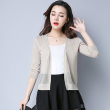 韩版春夏季冰丝针织衫女开衫短款薄款宽松小外搭镂空空调衫小外套