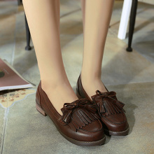 sunly16春季新款复古流苏鞋女擦色低跟英伦风雕花牛津单鞋乐福鞋