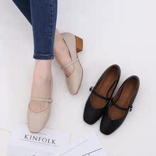 2017春夏粗跟复古百搭浅口工作鞋玛丽珍方头低帮单鞋英伦文艺女鞋