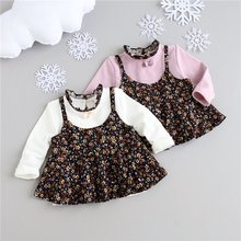 韩版公主女宝宝秋装纯棉磨毛长袖T恤+吊带裙2件女婴儿打底衫小童