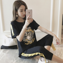韩国新款时尚孕妇套装2017孕妇夏装短袖纯棉印花t恤两件套运动装