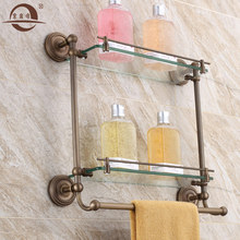 全铜仿古浴室置物架 卫浴毛巾架玻璃化妆台淋浴房卫生间置物架