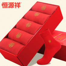 恒源祥本命年袜子红色婚庆袜情侣男女袜秋冬中筒中厚节庆刺绣棉袜