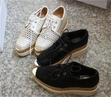 段真真01新款厚底松糕洞洞鞋女舒适镂空方头内增高跟单鞋系带女鞋