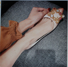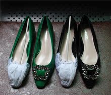 平底尖头鞋浅口2017新款平跟绸缎水钻方扣方钻单鞋女鞋小辣椒同款