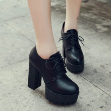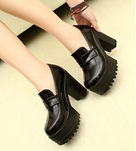 2015秋新款复古圆头粗跟中跟小皮鞋学院风防水台高跟单鞋英伦女鞋